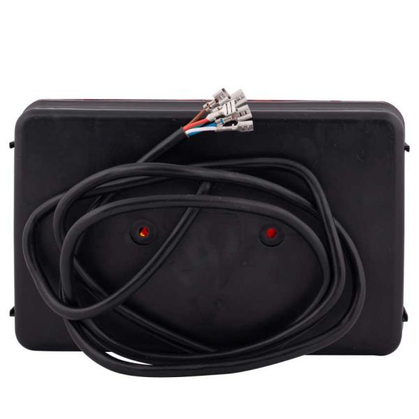 Achterlicht met driehoek rechts + kabel Meerkamer achterlicht voor plaatsing rechts. Kompleet met ca. 1,50 meter kabel met stekkers. Benodigde lampjes: 3 x bol 12V 21W 1 x bol 12V 21-5W Apart meebestellen Bijpassend artikel: Beschermrek groot Art.nr 9706255