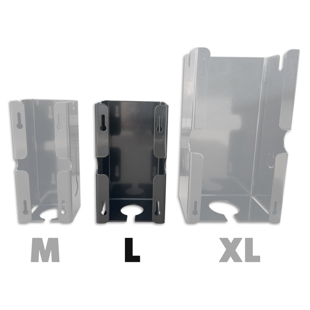 De acculader wandhouder van formaat L is geschikt voor de opladers van verschillende voertuigen en merken: