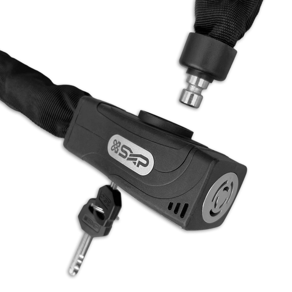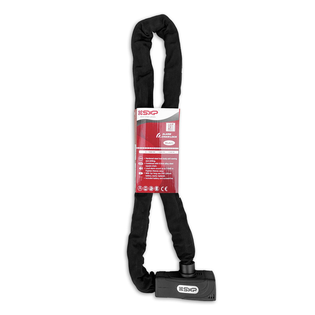 Dit ART 2 alarm kettingslot van SXP zal afschrikken wanneer ze een fiets of fatbike proberen te stelen. Het kettingslot is namelijk voorzien van een ingebouwd alarmsysteem, dat in/uit te schakelen middels een simpele draaibeweging met de sleutel is. Eenmaal ingeschakeld, zal het alarm aanslaan door beweging van het slothuis. Bij de eerste beweging zal het slot beginnen met tien waarschuwingspieptonen. Blijft het kettingslot vervolgens bewegen? Dan wordt het alarm geactiveerd, waarbij het volume oploopt tot 110 decibel. Perfect, wanneer de tweewieler geparkeerd staat in een gebied met een hoog diefstalrisico. Is het diefstalrisico minimaal? Dan is het alarm simpel uit te schakelen, om te vertrouwen op de kracht van het kettingslot. Dit krachtige ART 2 goedgekeurde kettingslot heeft een geharde stalen slothuis, welk bestand tegen lockpicken, zagen en boren is. Dit in combinatie met de 8,5 millimeter dikke vierkante gelegeerde stalen schakels, maakt het slot nog sterker. Om frameschade te voorkomen tijdens het gebruik van het kettingslot, zijn de kettingschakels omhult met zachte nylon hoes. Verder is de slotcilinder middels een verschuifbaar afdekkapje af te sluiten van vuil en vocht, zodat deze schoon blijft en werking versterkt. Wordt geleverd met 2 sleutels. Werkingsalarm Startpositie: Het kettingslot is geopend, waarbij de slotpen uit het slothuis is. Alarmmodus inschakelen Steek de slotpen in het slothuis en draai de sleutel 180 graden (op slot). Hoor je een pieptoon? Dan wordt ruim 15 seconden de alarmmodus geactiveerd, de sleutel kan nu uit het slothuis komen. Na 15 seconden zal er een 2de pieptoon klinken om te bevestigen dat vanaf dit moment het kettingslot zal alarmeren bij beweging. Hoor je geen pieptoon? Draai de sleutel dan 180 graden (slot open) en opnieuw 180 graden (op slot) terug. Nu je de pieptoon wel hoort en over 15 seconden de alarmmodus geactiveerd wordt, kan de sleutel nu uit het slothuis komen. Na 15 seconden zal er een 2de pieptoon klinken om te bevestigen dat vanaf dit moment het kettingslot zal alarmeren bij beweging. Alarmmodus uitschakelenSteek de sloten in het slothuis en draai de sleutel 180 graden (op slot). Hoor je een pieptoon? Draai de sleutel dan 180 graden (slot open) en opnieuw 180 graden (op slot) terug. Nu zul je geen pieptoon horen. De alarmmodus is uitgeschakeld. Hoor je geen pieptoon? Dan is de alarmmodus uitgeschakeld. Bekijk hier de video: https://youtu.be/HJ7pWBdVQgU