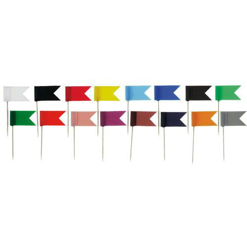 Deze markeringen in de vorm van vlaggetjes 'wapperen in de wind'. Je kunt ze gebruiken als marketingvlaggetjes om bijvoorbeeld aan te geven waar je bent geweest op de wereldkaart. Deze signalisatiespelden zijn geschikt om in een prikbord of andere zachte ondergrond te prikken. 20 stuks in doosje. Kleur assorti. De hoeveelheden in kleuren kunnen verschillen