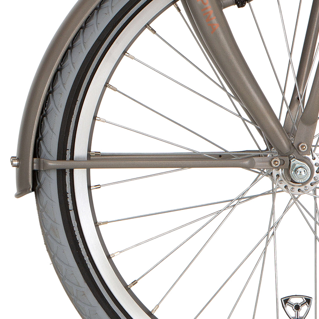 De Alpina spatbordstang set 20 Cargo vintage goud mat PMS8002 met mat is een prachtige toevoeging aan uw fiets. Het spatbord stang set heeft een vintage gouden matte kleur, waardoor het een unieke uitstraling heeft. Met deze set kunt u uw fiets beschermen tegen vuil en water tijdens het fietsen. Het is een duurzame en stevige set die lang meegaat.