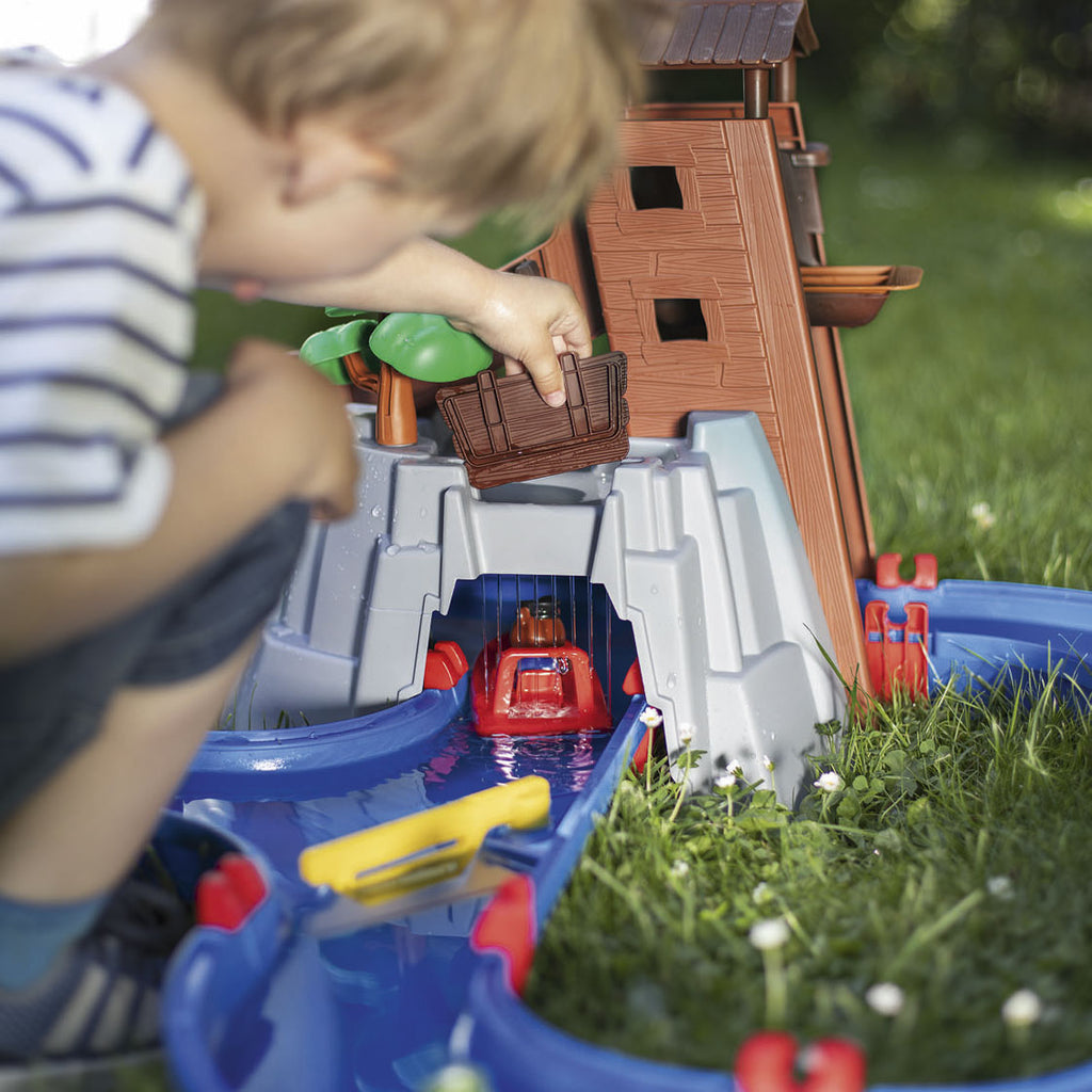 Wat een fantastische waterbaan is dit Adventure Land van AquaPlay! Beer en Krokodil beleef de gekste dingen in deze wildwaterbaan! Veroorzaak stroming met de hendels, laat ze van de glijbaan af gaan, vaar onder de waterval door en blokkeer de baan zodat ze weer de andere kant op moeten! Urenlang speelplezier met deze mooie waterset. Inhoud: 69 delen om de baan in elkaar te zetten, 2 speelfiguren en 2 bootjes. Gemaakt van kunststof, afmetingen van de baan: 138 bij 88 bij 47 centimeter. Deze set wordt geleverd in een fotodoos in AquaPlay stijl.