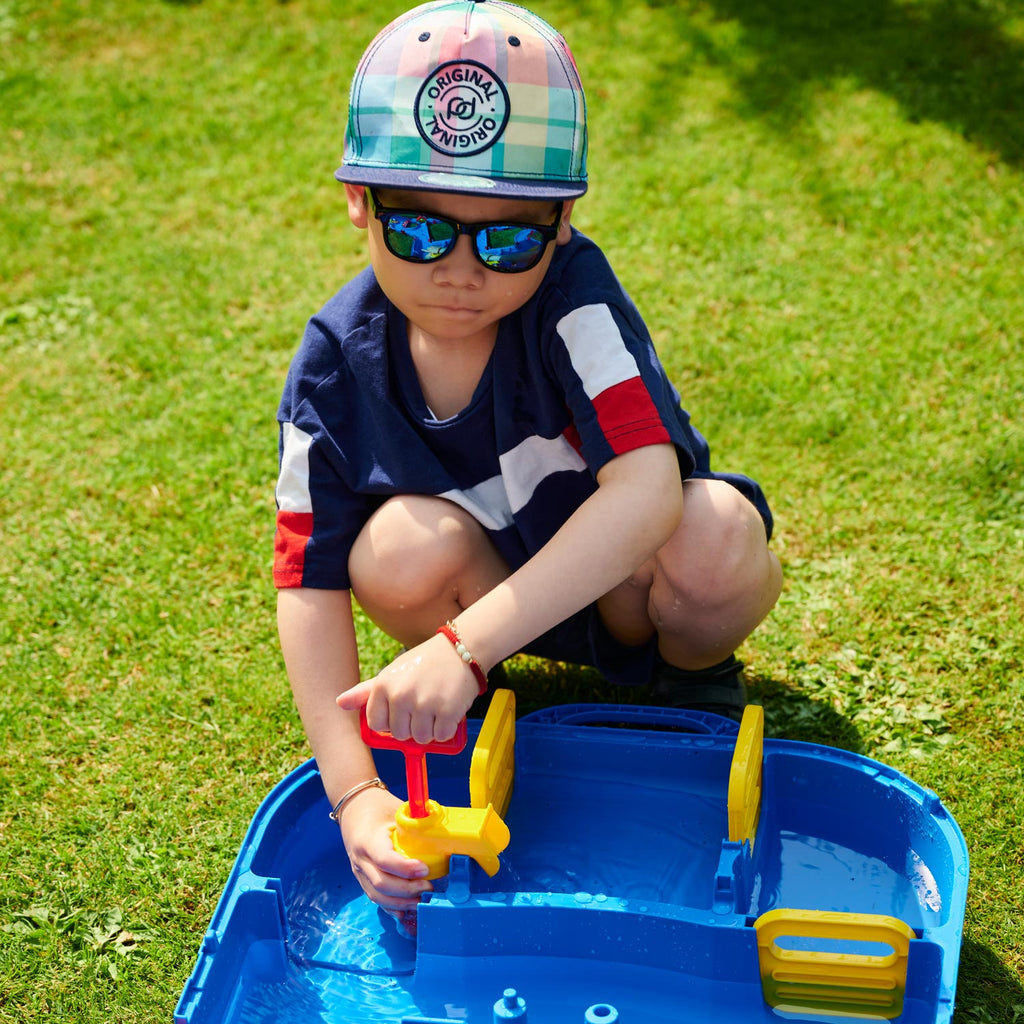 Welkom bij het grootste wateravontuur: AquaPlay 1660 - AquaPlay 'n Go! Deze uitgebreide waterbaan bevat de meeste en nieuwste speelonderdelen en is maarliefst 16 0 x 145 cm groot. Neem containers op de boten met de kraan, drijf heen en weer met de veerboot of rijden met de amfibische auto vanaf de brug het water in. Vanaf de verschillende kades laat je de speelfiguren Wilma het Nijlpaard, Kapitein Bo, Niels de Kikker en Lotta de Eend op hun boot stappen. Laat de veerboot en de andere boten vooruit varen door aan het waterrat te draaien. Met de waterpompreguleer je het waterniveau in de sluizen. De AquaPlay speelsets zijn gemaakt van stevig, waterdicht kunststof en bevat 56 onderdelen die je leert hoe het water beweegt. Na het spelen klap de baan gemakkelijk in tot een handige draagkoffer voor alle losse onderdelen. Zo geniet je ook in de tuin, op vakantie of op het strand het AquaPlay waterplezier! Combineer de AquaPlay 'n Go Set met andere AquaPlay speelsets met losse accessoires voor nog meer waterplezier!
