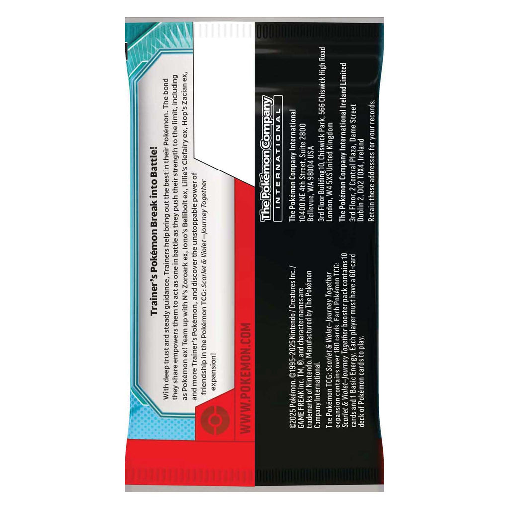 Met diep vertrouwen en vastberaden begeleiding helpen Trainers het beste in hun Pokémon naar boven te halen. De band die ze delen stelt hen in staat als één te handelen in gevechten, terwijl ze hun krachten tot het uiterste drijven - inclusief als Pokémon ex. Werk samen met N’s Zoroark ex, Iono’s Bellibolt ex, Lillie’s Clefairy ex, Hop’s Zacian ex en andere Pokémon van Trainers en ontdek de onstuitbare kracht van vriendschap in de Pokémon TCG: Scarlet & Violet — Journey Together uitbreiding. Voor kinderen vanaf 6 jaar.