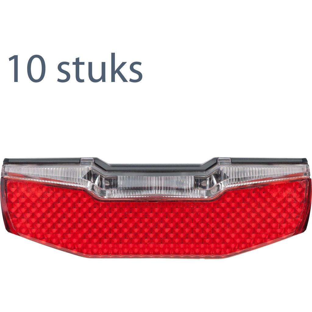 Axa achterlicht Blueline Steady 80mm dynamo is een krachtig fietsachterlicht dat zorgt voor optimale zichtbaarheid en veiligheid. Met een bereik van 600 meter kan je goed gezien worden, zelfs in het donker. Het achterlicht is voorzien van 2 krachtige LED's en wordt volledig verlichte deurlichtgeleidertechnologie. Hierdoor ben je goed zichtbaar voor andere weggebruikers.
