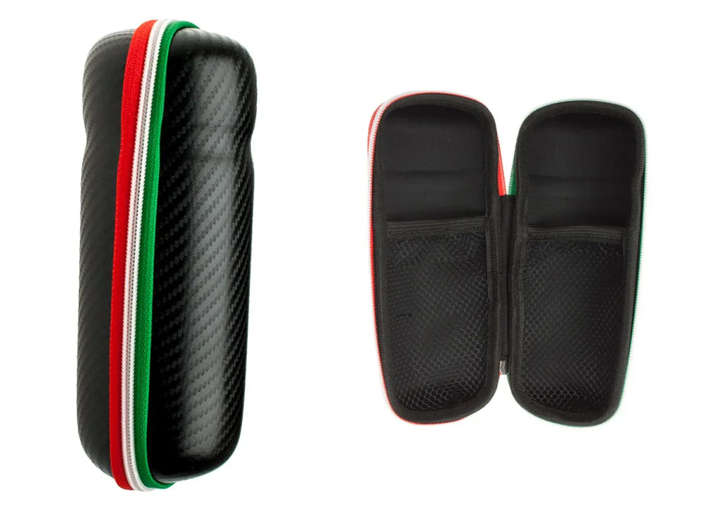 Description Barbieri, Bottle for essentials, black carbon look, for tools, wind jackets etc., with 2 pockets, with zip