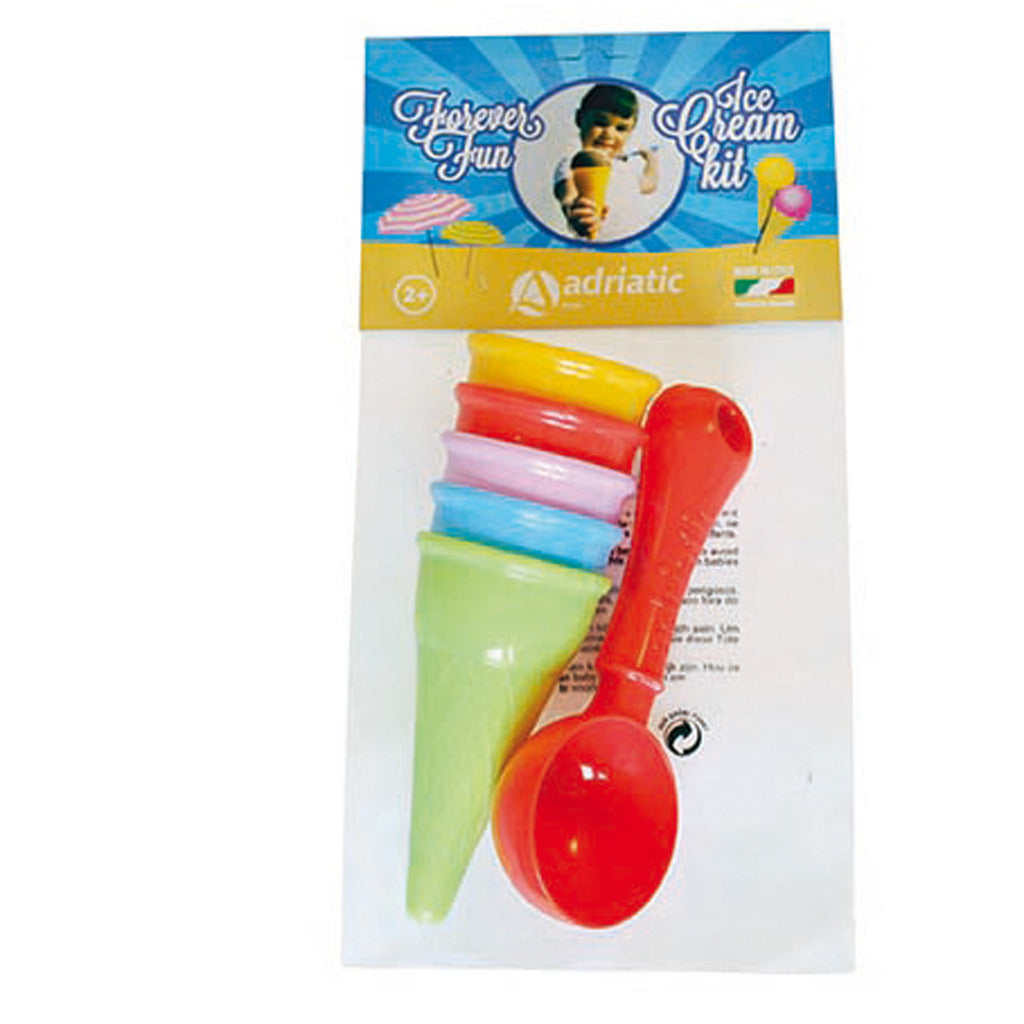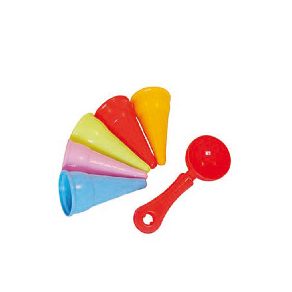 Schep bolletjes zand op en zet ze daarna op de ijscohoorntjes. Je kunt voorstellen maar liefst vijf zandijsjes maken! 'Eet' ze alleen op of nodig je vriendjes en vriendinnetjes uit.