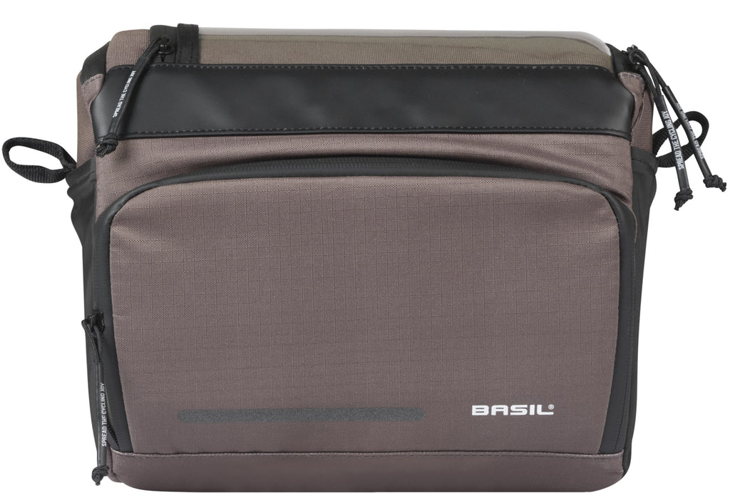 Eenvoudige montage: Geschikt voor KF systemen (niet inbegrepen, 70177 en 70189) Perfect voor dames en heren elektrische-, stads- en trekkingfietsen, Maak je fietstochten praktisch en stijlvol met de Basil Move stuurtas! Basil Move stuurtas, waterafstotend gerecycled polyester, div. vakken, klep met waterdichte transparante kaart voor smartphone, schouderriem, geschikt voor KF systemen (niet inbegrepen), incl. Basil KF adapterplaat (70158), reflectie, 7-8L, bruin
