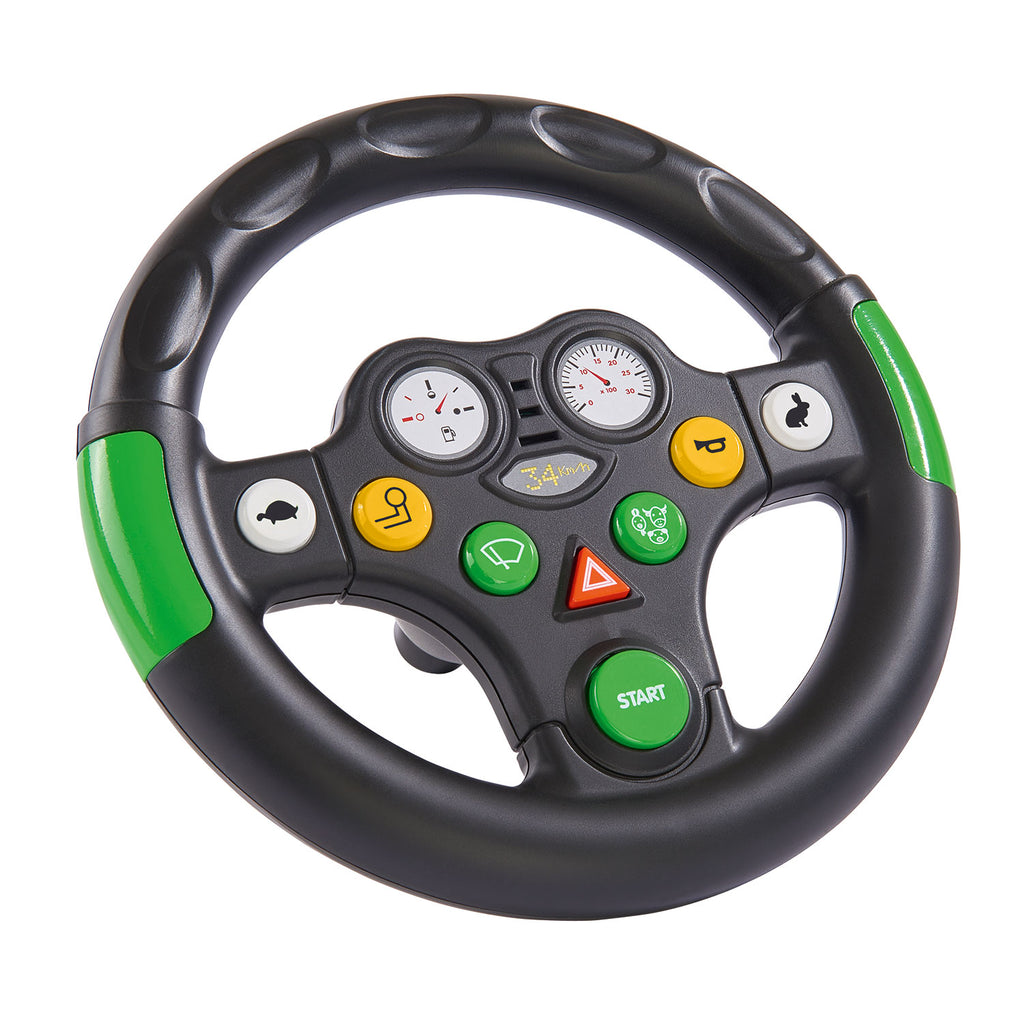 Plaats dit GROTE geluidsstuur op je tractor en hoor 8 verschillende motor- en boerderijgeluiden. - Starter - Motor bij langzaam rijden - Hydraulisch systeem - Ruitenwisser - Waarschuwingsknipperlicht - Dierengeluiden (haan, varken en koe) - Claxon - Motor snel bij rijden Past op alle BIG tractoren en andere bekende merktractoren. Let op: artikel beschermen tegen vocht.