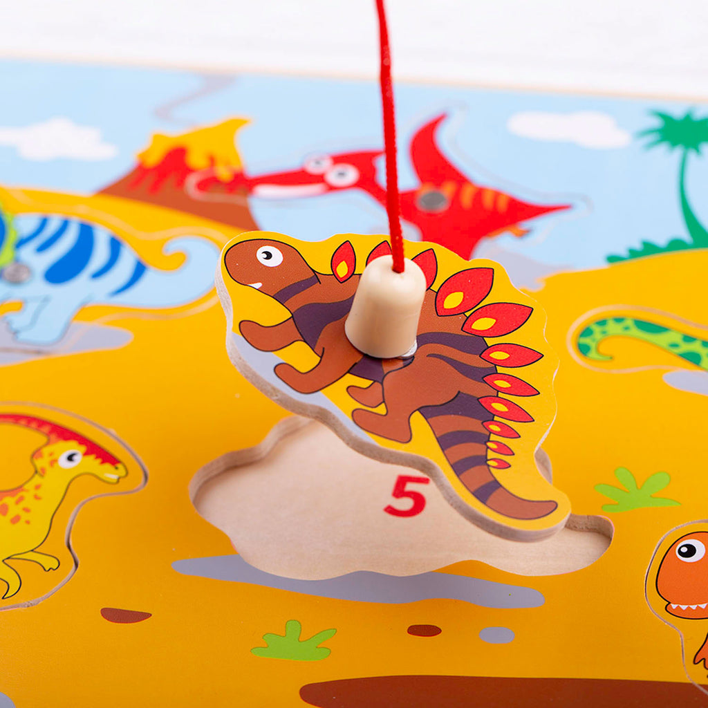 Met dit houten visspel kun je dinosaurussen vissen! Het Magnetisch Visspel Dino's is gemaakt van hout en heeft een ondergrond van 30x22,5 centimeter. Het spel bevat 6 kleurrijke houten dinosaurussen en een vishengel met magneet. Puzzel de dino's bij het juiste cijfer van het Magnetisch Visspel Dino's en vang ze daarna met de vishengel.