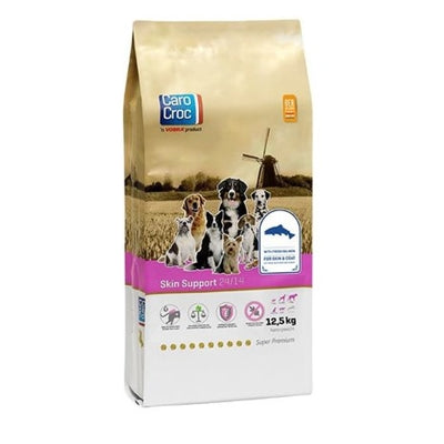 De Carocroc Skin Support 12;5 kg is een volledige hondenvoeding die bereid is met verse zalm en die ondersteuning biedt voor een gezonde huid en volledige vacht. Een mooie huid en vacht gepaard gaan met goed voer. Daarom is Skin Support van Carocroc speciaal ontwikkeld om extra aandacht te geven bij een gevoelige huid of een verslechterde huid- en vachtconditie.