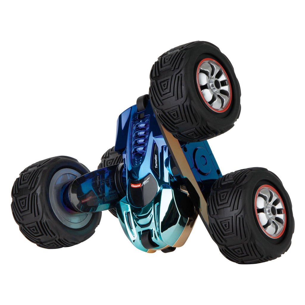 Beleef adembenemende stunts met de Turnator Color Flip! Deze op afstand bestuurbare ACTION STUNT CAR op een schaal van 1:16 geïnspireerd met grandioze salto's en 360° stunts. Het kameleoneffect verandert van kleur afhankelijk van de beeldhoek, terwijl het LED-LICHT zorgt voor een goede zichtbaarheid 's nachts. Spatwaterdicht en met verschillende bestuurbare assen bieden hij maximaal rijplezier met een TOP-snelheid van 20 km/u. Dankzij de robuuste carrosserie, het volledig geveerde chassis en de oplaadbare hightech LiFePo BATTERY is hij duurzaam en klaar voor veel actie. Perfect als cadeau voor kinderen en actieveans van 6 jaar en ouder. Kenmerken • Op afstand bestuurbare ACTION STUNT CAR voor grandioze salto's en 360° stunts op een schaal van 1:16 • Differentiële regeling met storagesvrije 2,4 GHz radiotechnologie • FLOP Metallic lak: afhankelijk van de kijkhoek verandert de speciale kameleon effect lak • LED-LICHT voor bijzondere goede verschijning 's nachten • Spatwaterdicht en actiebelast met opmerkelijke regelbare assen • Beweegt vooruit, andere en rolt om. Met mogelijk bestuursbare assen • Maximaal rijplezier dankzij de krachtige motor en topsnelheid tot 20 km/u • Voor actieveans van 6 jaar en ouder • KLAAR OM TE RENNEN: De op bestuurafstandbare actiestuntauto is onmiddellijk klaar om te rijden - uitpakken en aan de slag! • ROBUUST en duurzaam: behuizing van speciaal kunststof • HOOGWAARDIGE UITRUSTING: Volledig geveerd chassis en luchtbanden • HOGE PRESTATIES dankzij oplaadbare high-tech LiFePo AKKU • LANGE geselecteerd tot 20 min Voor actie fans vanaf 6 jaar oud.