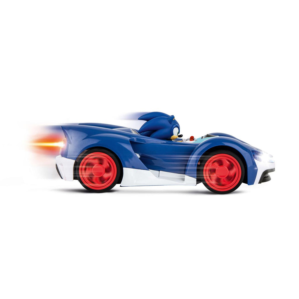 Sonic de blauwe egel is een cultracer in de Carrera RC-stal en klaar om te bewijzen dat hij niet alleen bliksemsnel op zijn voeten is. Hij kan niet wachten om het in zijn zilverblauwe raceauto tegen iedereen te nemen en te laten zien wie de snelste egel ter wereld is. Zijn stijlvolle wagen is uitgerust met LED-koplampen voor een betrouwbare look tijdens elke race. Luchtbanden vervoeren hem veilig over alle soorten terrein.