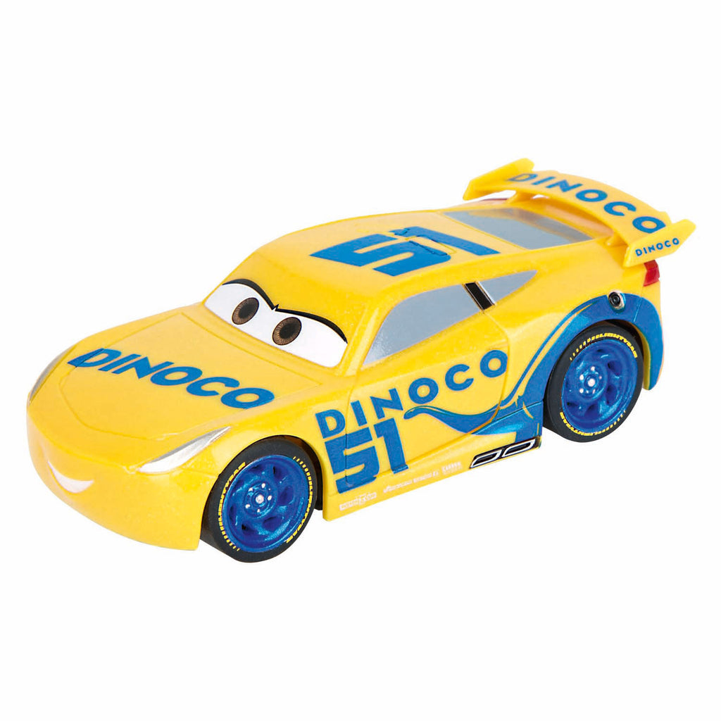 Racebaan in Disney Pixar Cars-thema met Bliksem McQueen en Cruz Ramirez. Gemaakt van kunststof, geschikt voor 2 spelers en kinderen vanaf 3 jaar. Afmetingen 100 x 45 cm, schaal 1:50, werkt op AA-batterijen of USB-C.
