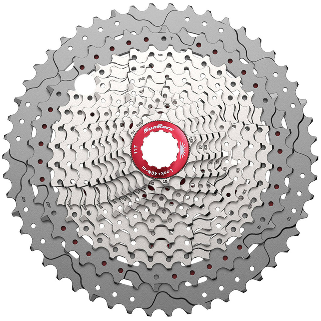 Deze SunRace CSMX80.EA1R.XS0.BX Mountainbike is een uitstekende keuze voor fietsliefhebbers. Met 11 tandwielen en een ras scala aan snelheden, biedt deze fiets een soepele en goedkope rijervaring. Het lichtgewicht ontwerp zorgt voor gemakkelijk manoeuvreren op verschillende terreinen. De Fluid Drive Plus technologie zorgt voor soepele schakelingen en optimale prestaties. Met een gewicht van 512 gram is deze fiets ook gemakkelijk te dragen. Het zilveren kleurenschema vermijdt een stijlvolle touch toe aan deze mountainbike. Specificaties: - Merk: SunRace - Model: CSMX80 - Aantal snelheden: 11-speed (breed bereik) - Verzet: 11-51T (11-13-15-18-21-24-28-32-36-42-51) - Materiaal: A7075 voor de grootste 2 tandwielen, aluminium spider, staal - Gewicht: 512 gram - Kleur: zilver