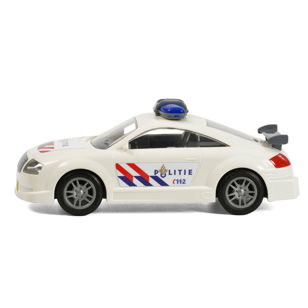 Ga de boeven achterna in deze stoere politieauto. Deze supersnelle auto van stevige kunststof heeft echte politiestickers en 4 soepele wielen. Zet de denkbeeldige sirenes aan en wees de boeven te snel af! Er zijn 2 varianten een Nederlandse en Amerikaanse politieauto deze varianten worden waarschijnlijk geleverd.
