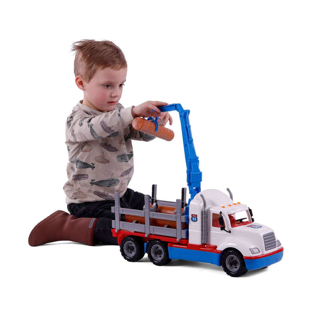 Torpedovrachtwagen 55 XL Torpedovrachtwagen met Hout van 53 centimeter groot. Geschikt voor kinderen van 3 jaar en ouder.
