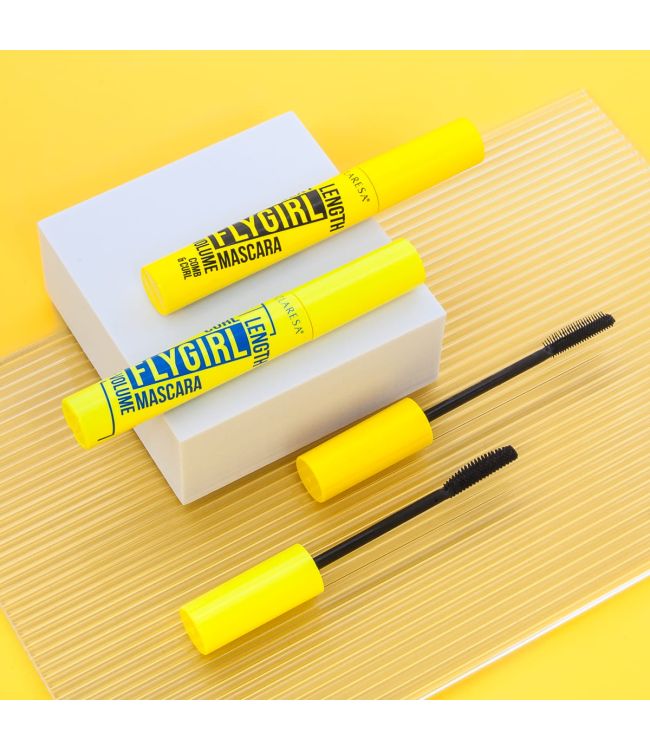is een mascara met assymetrisch borsteltje voor extra lange, gekrulde en verleidelijke wimpers. De borstel lift de wimperharen en brengt de juiste hoeveelheid mascara in één keer aan. De Flygirl mascara zorgt voor gelifte, beschadigde en bevestigde wimpers! De chemische formule brengt gemakkelijk aan en onmogelijk een intense, diepe kleur. Gebruik: breng aan van de wortels tot de uiteinden van de wimpers. Voeg meerdere lagen toe voor een verdikkend en verlengd effect. Plus- en minpunten Mascara met een assymetrisch borsteltje Optimale krul en lengte op alle wimpers Perfecte scheiding Intens zwarte kleur Ingrediënten: AQUA (WATER), SYNTHETISCHE BIJENWAS, PARAFFINE, CI 77499 (IJZEROXIDES), ACACIA SENEGAL GOM, STEARINEZUUR, TRIETHANOLAMINE, PALMITINEZUUR, POLYBUTEEN, GLYCERYL STEARAAT, VP/EICOSEEN COPOLYMEER, COPERNICIA CERIFERA CERA (COPERNICIA CERIFERA (CARNA UBA) ) WAX), BUTYLEENGLYCOL, ORYZA SATIVA CERA (ORYZA SATIVA (RIJST) BRAN WAX), FENOXYETHANOL, METHYLPARABEN, PROPYLPARABEN, HYDROXYETHYLCELLULOSE