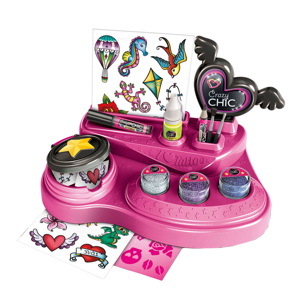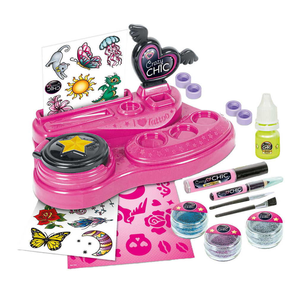 Super coole kit voor het maken van trendy tattoos met prachtige kleuren. De kit bevat een praktische werkbank met veel accessoires, waardoor je fantasie en creativiteit de vrije loop kunt laten. Met de Crazy Tattoo app worden tattoos op magische wijze driedimensionaal. Je kunt ze fotograferen, personaliseren en delen met vrienden via de meest trendy sociale media! Geschikt voor kinderen vanaf 6 jaar.
