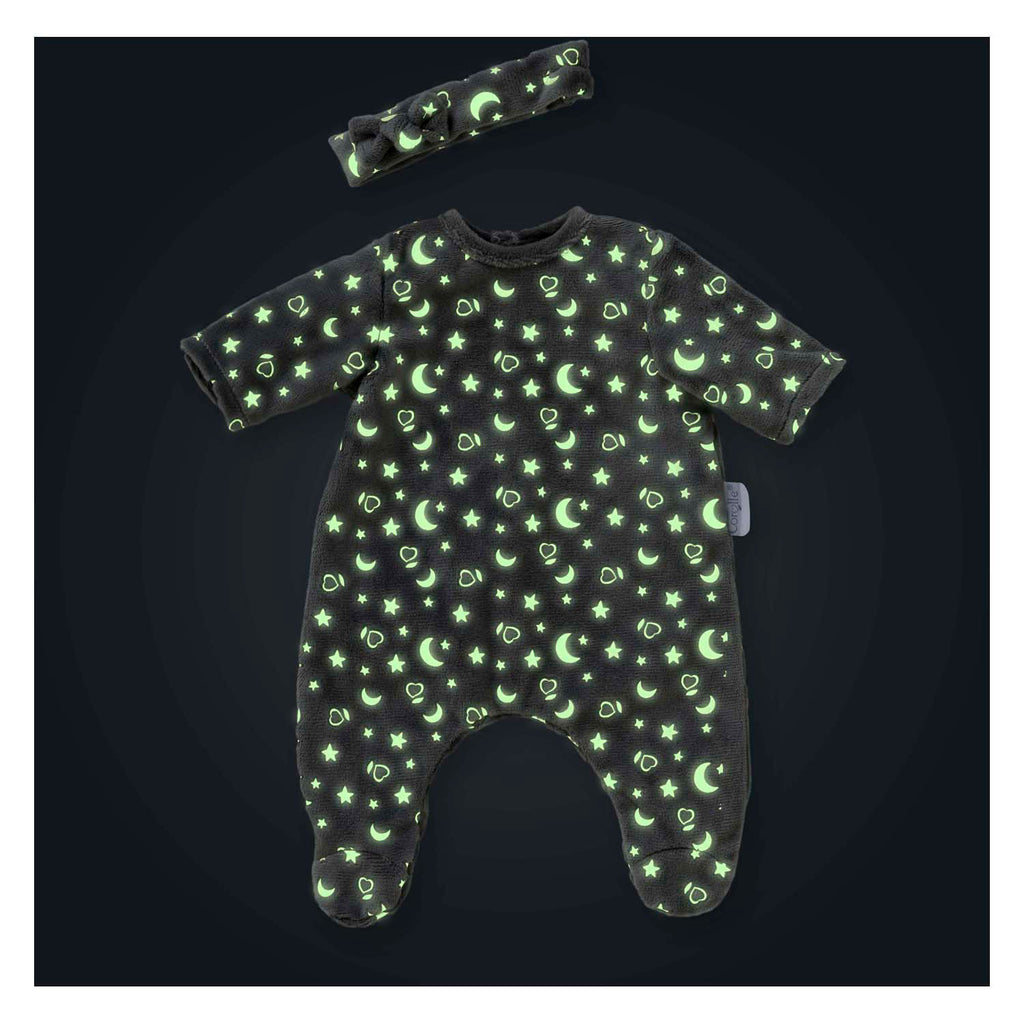 Het zandmannetje is mooi geworden, baby zal de nacht doorbrengen met en zoete dromen! De Shine in the Night pyjama met haarband is het ideale kledingstuk voor kleine Corolle poppen van 30 cm. Deze mooie pyjama is gemaakt van zachte en duurzame materialen. De mooie sterren en mannen maken deze zachte pyjama wanneer ze licht geven in het donker! aan het trekken dankzij de klittenbandsluitingen. Deze outfit is speelgoed dat geschikt is voor kinderen vanaf 18 maanden oud. Pop van 30 cm wordt apart verkocht.