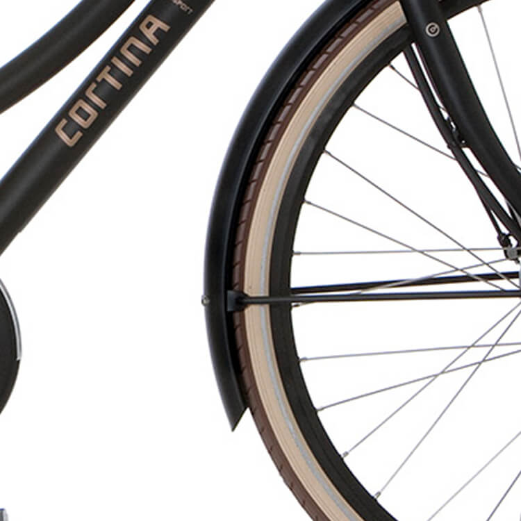 Een Cortina voorbord model Cortina E-U1/E-U4 Transport in de kleur Jet Black Matt. Dit spatbord is geschikt voor frames in alle uitvoeringen met een 28inch wielmaat. Het specifieke formaat van het voorbord is 750x58mm. Het kleurnummer van dit spatbord is UZZ 69005.