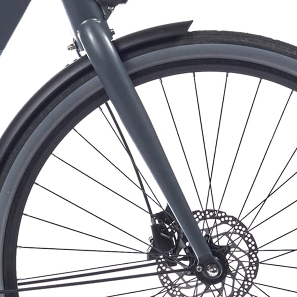 De Cortina v vork E-Blau Disc Brake is een blauw-grijze voorvork die perfect verleden tijd is bij de Cortina E-Blau e-bike. Met zijn A-Head 1/8x245 UBLG afmetingen en draadverbinding is deze voorvork eenvoudig te installeren op je fiets. De vork heeft geen lock-out functie, maar biedt wel betrouwbare remprestaties dankzij de schijfrem. Geniet van een comfortabele en stabiele rit met deze hoogwaardige voorvork van Cortina. Productspecificaties