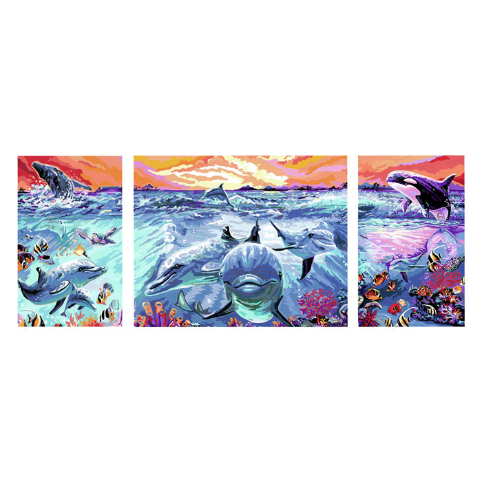 Schilder het kunstwerk CreArt Dolfijnen bij zonsondergang! Schilderen op nummer van Ravensburger - iedereen kan schilderen! Dankzij de eenvoudige schildertechniek van schilderen op nummer is het kinderlijk eenvoudig de kunstenaar in jezelf wakker te maken! Dankzij de duidelijke schildervakjes ontstaan een klein en prachtig kunstwerk van 100,00 cm x 4 cm. De fijnere kleurnuanceringen zorgen voor een elegante kleurverloop en schaduwspel. Uitpakken en aan de slag, met de afbeelding van Dolfijnen bij zonsondergang!
