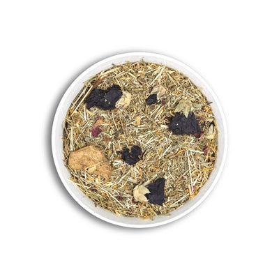 Samenstelling: Wilde weidehooi, zonnebloemmeel, tarwemeel, gerst, mariadistel, karwij, fenegriek, venkel, sint-janskruid, citroenmelisse, Duitse kamille, klaver, oranjebloesem, lijnzaad, duizendguldenkruid, roos (knop)