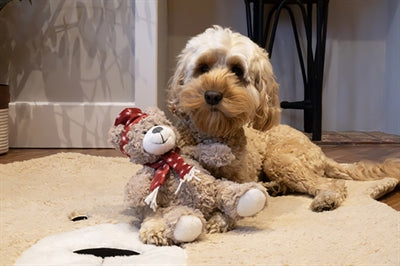 De 30X13 cm is een hondenspeeltje in een winterse outfit. Breng de kerstsfeer naar de speeltijd van je hond met deze feestelijke hondenknuffel. Brie Beer, met zijn sneeuwvlokkenprint muts en sjaal, is perfect voor knusse winteravonden. De verborgen pieper zorgt voor extra speelplezier, of het nu gaat om apporteren of gewoon lekkere knuffels.