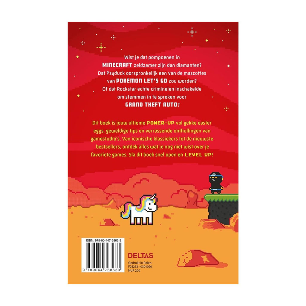 Wist je dat pompoenen in MINECRAFT zeldzamer zijn dan diamanten? Dat Psyduck oorspronkelijk een van de mascottes van POKÉMON LET’S GO zou worden? Of dat Rockstar echte criminelen inschakelde om stemmen in te spreken voor GRAND THEFT AUTO? Dit boek is jouw ultieme POWER-UP vol gekke easter eggs, geweldige tips en verrassende onthullingen van gamestudio’s. Van iconische klassiekers tot de nieuwste bestsellers, ontdek alles wat je nog niet wist over je favoriete games. Sla dit boek snel open en LEVEL UP! Wist je dat pompoenen in Minecraft zeldzamer zijn dan diamanten? Dat psyduck oorspronkelijk een mascottes van Pokémon let's go zou worden? Of dat Rockstar echte criminelen inschakelde om stemmen in te spreken voor Grand Theft Auto. Dit boek is jouw ultieme POWER-UP vol gekke easter eggs, geweldige tips en verassende onthullingen van gamestudio's. Van iconische klassiekers tot de nieuwste bestsellers, ontdek alles wat je nog niet wist over je favorite games, Sla dit boek snel open en LEVEL-UP