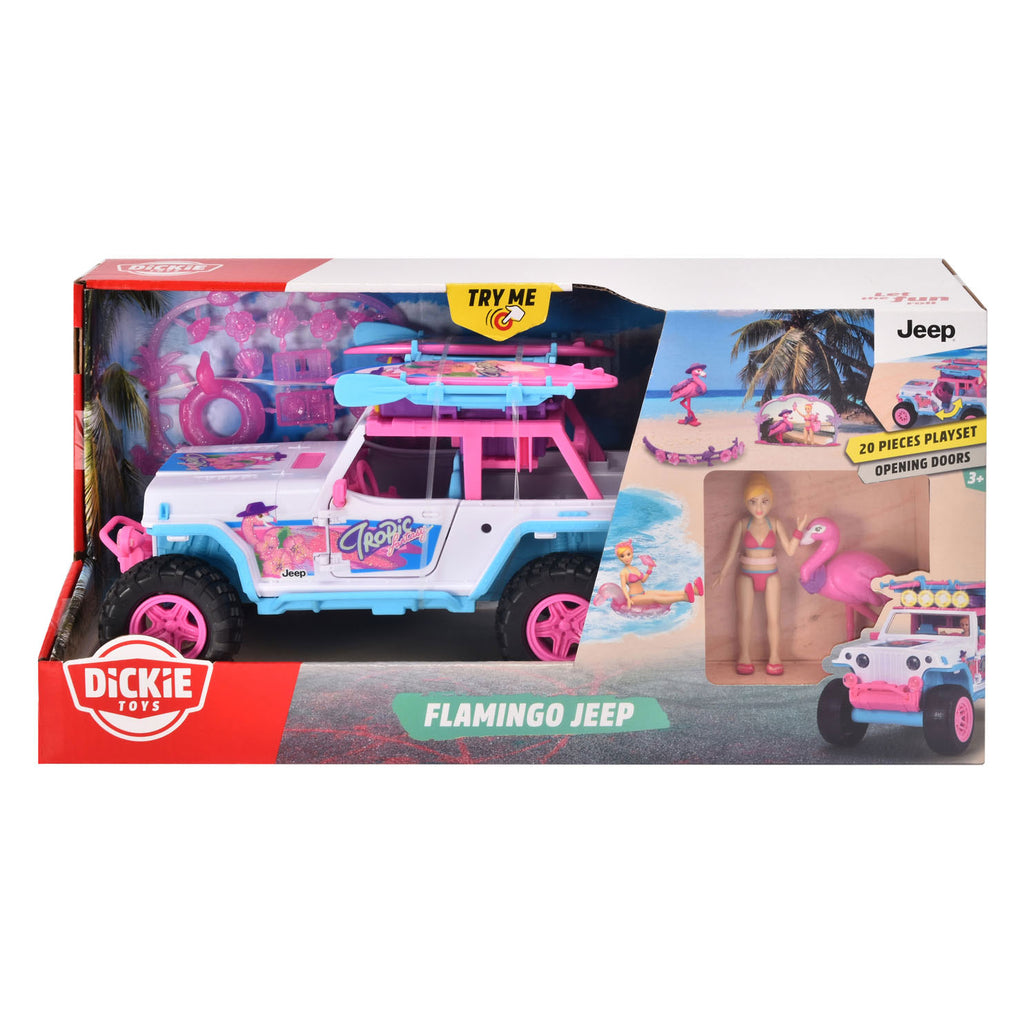 De Dickie Toys Flamingo Jeep is het perfecte speelgoedvoertuig voor jonge strandliefhebbers. Met zijn uitgebreide assortiment accessoires biedt het gegarandeerd urenlang actievol plezier. Laat je kleintje nieuwe en creatieve speelscenario's bedenken en spelen ze uit met deze geweldige set!