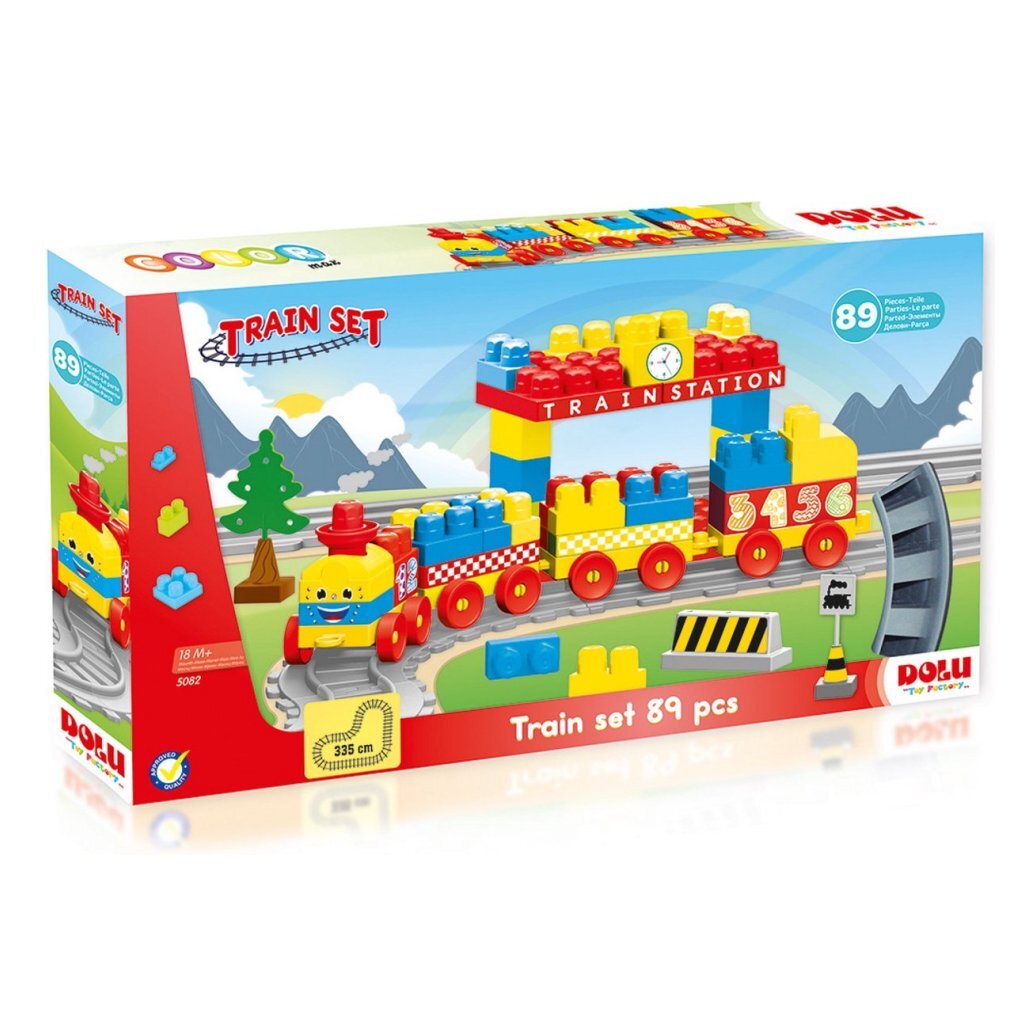 De set bestaat uit 89 onderdelen, waarvan verschillende houten blokken en een rails die zorgt voor een baanlengte van wel 335 cm. Vier blokjes hebben wielen, zodat je kindje een locomotief en verschillende wagonnetjes kan bouwen. De set wordt geleverd met verschillende stickers die de blokken opfleuren en waarmee je kindje de cijfers 1 t/m 6 kan leren, zo zijn de combinaties en mogelijkheden eindeloos! Geschikt voor kinderen vanaf 18 maanden.