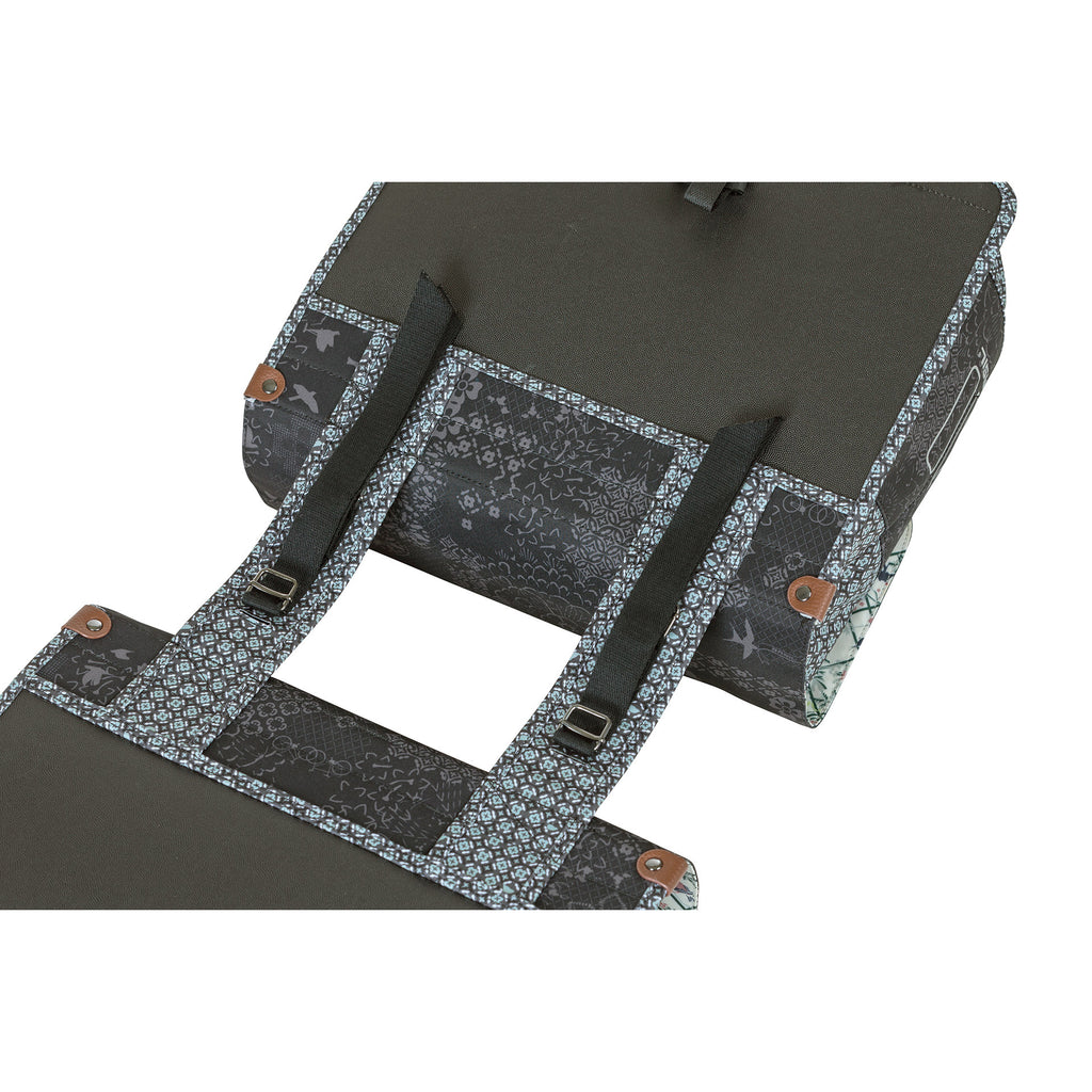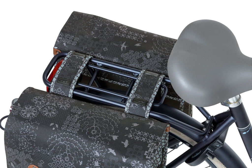 De Basil Bohème Dubbele Fietstas is een stijlvolle zwarte fietstas met een bohemien print. Met een inhoud van 35 liter biedt deze tas voldoende ruimte voor boodschappen, sportspullen en andere benodigdheden. De fietstas is geschikt voor diverse bagagedragers, inclusief e-bikes, en heeft stevige binnenvoering en kunstlederen details. Het waterafstotende polyester zorgt ervoor dat de inhoud van de tas droog blijft bij een kleine regenbui. De reflectiedetails zorgen voor betere zichtbaarheid in het donker. De taak kan op twee manieren worden bevestigd dankzij het Universal Bridge-systeem. De fietstas is afneembaar in combinatie met een adapterplaat, die apart verkrijgbaar is. Specificaties: - Geschikt voor diverse bagagedragers, inclusief e-bikes - Waterafstotend polyester - Reflectiedetails voor betere zichtbaarheid - Inhoud: 35 liter - Materiaal: Polyester - Kleur: Zwart - Sluiting hoofdvak: Kliksluiting - Laptopvak: Nee - Zijvak(ken): Nee - Voorvak(ken): Nee - Diefstalbeveiliging: Nee - Waterbestendig: Spatwaterdicht - Snelbinders mogelijk: Ja - Afgeschakeld: Afneembaar icm MIK-systeem - Geen - Draagcapaciteit: 10 kg maximaal, maximaal 5 kg per tas - Garantie: 2 jaar, via het verkooppunt waar je het product hebt gekocht - Binnenvak: Nee