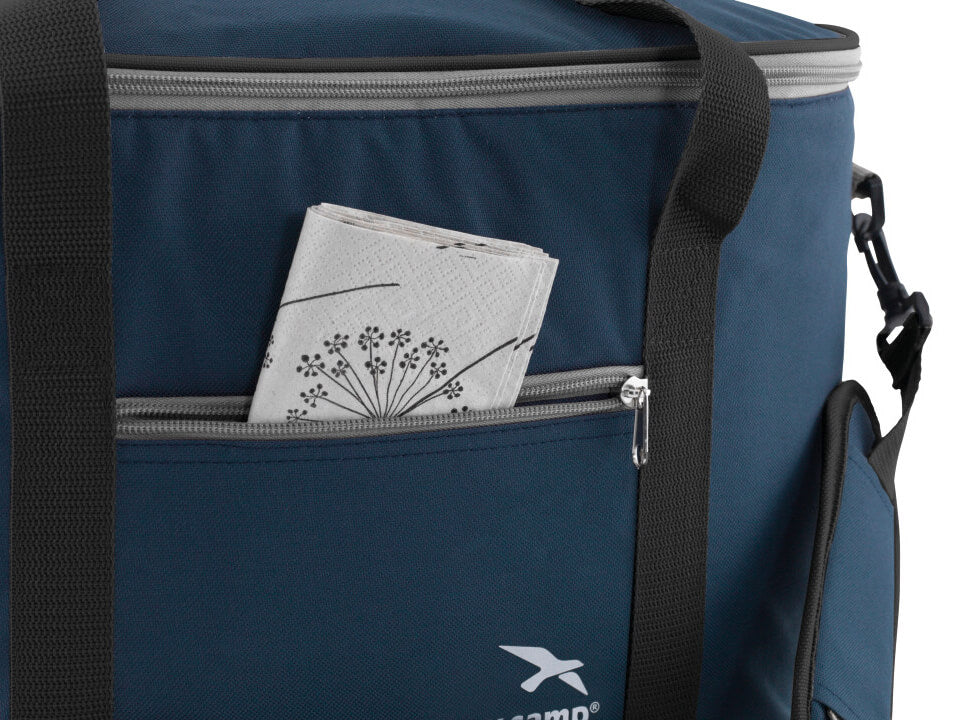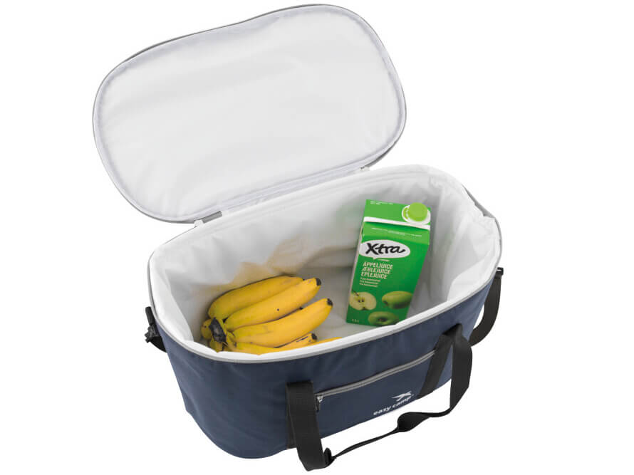 Dezeblauwe donker Easy Camp Koeltas is erg praktisch. De koeltas is gemaakt van zacht polyester met een PEVA-coating. Het voordeel van een zachte koeltas is dat deze leeg weinig ruimte in beslag neemt. De koeltas heeft een inhoud van 15 liter en een voorvak met verbrand.