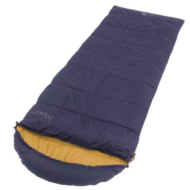 Het is een veelzijdige slaapzak voor op de camping of thuis. Hij is geschikt voor 2 à 3 seizoenen en heeft een comforttemperatuur van 2°C voor mannen en 7°C voor vrouwen. De capuchon kan tijdens koudere nachten worden aangesnoerd voor een betere isolatie van de lichaamswarmte. Tijdens warme nachten kan de rits aan de onderkant open gezet worden voor wat ventilatie. De Easy Camp Moon is geschikt voor mensen met een max. lichaamslengte van 195 cm en wordt geleverd in een opbergzak.