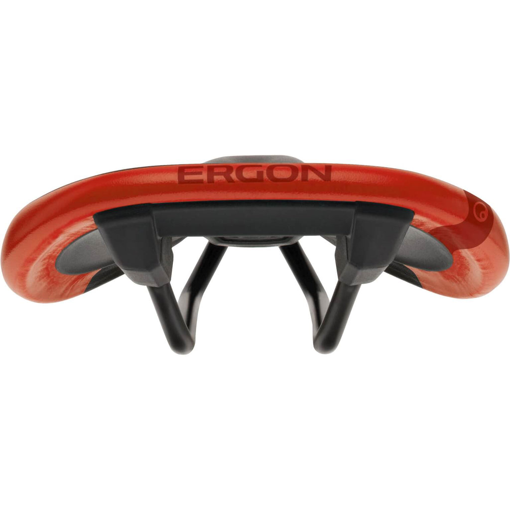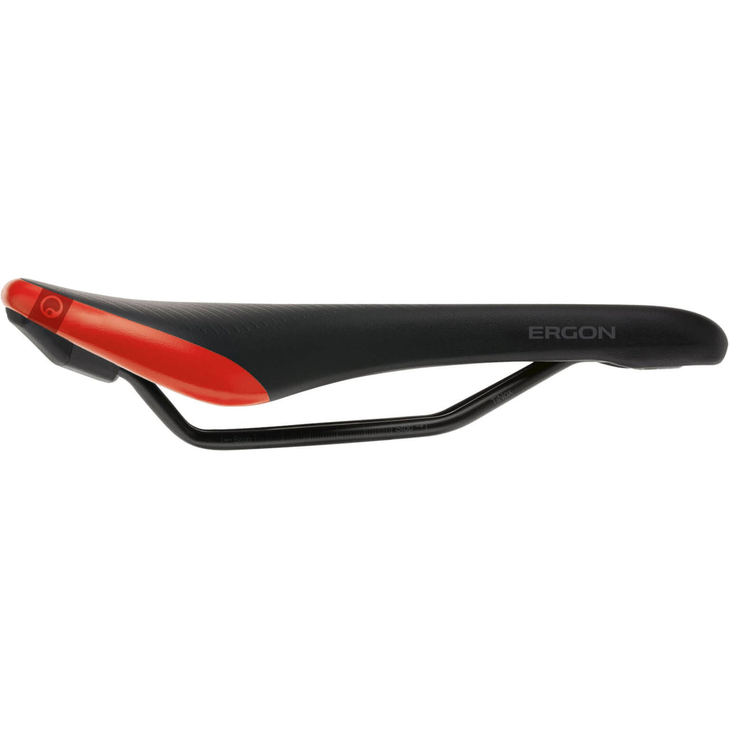 Ergon zadel SM Pro M/LH rood. De eerste keuze van de professionals van het Canyon Topeak Racing Team. OrthoCell-inlays in het zitgedeelte genereert de beste mogelijke drukverdeling - het innovatieve OrthoCell-materiaal zorgt voor maximale drukverdeling en is ook duurzaam en lichter dan gel. Dit zadel speciaal ontworpen voor heren en is bedoeld voor de MTB-wedstrijdrijder. Het zeer gevoelige perineale gebied wordt effectief ontlast en voorkomt ongemak door het vaste reliëfkanaal en een lichte AirCell-opvulling. De vlakke achterzijde en de Y-vorm volledige bewegingsvrijheid in de rijpositie, typisch voor mountainbiken. Gladde flanken helpen wrijving te verminderen tijdens het fietsen. Gewicht: 185 gram