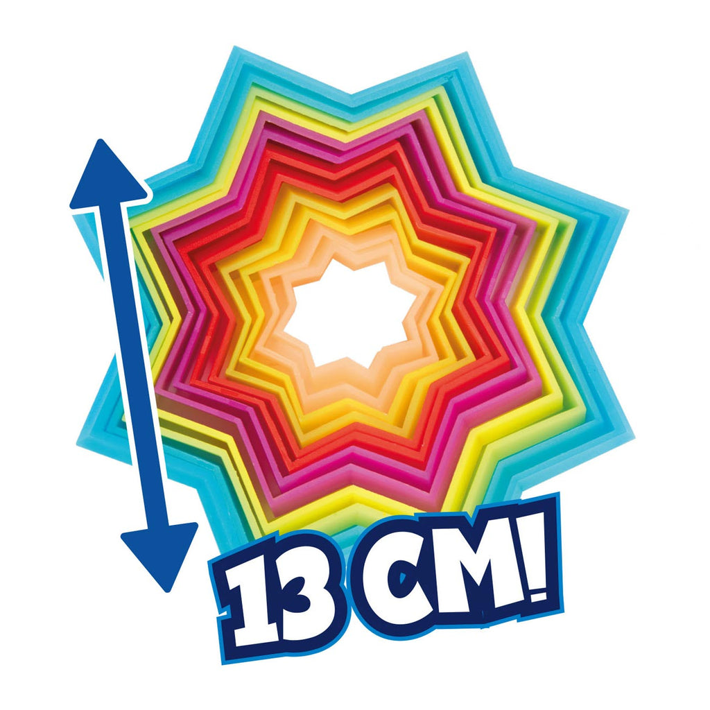 Schuif de ster over een blij oppervlak heen en weer en raak bijna gehypnotiseerd door de patronen die je dan ziet. Of tot de magische ster op en hij schuift telescopisch uit. Twee manieren om lekker te zijn met deze fidget ster te friemelen en frunniken. Om rustig van te worden.
