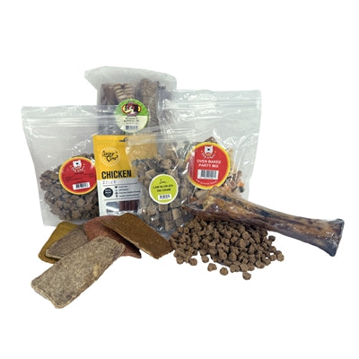 Het Fred's Party Kerstpakket is royaal gevuld met allerlei smakelijke hondensnacks, om je hond tijdens Kerst mee te verwennen.