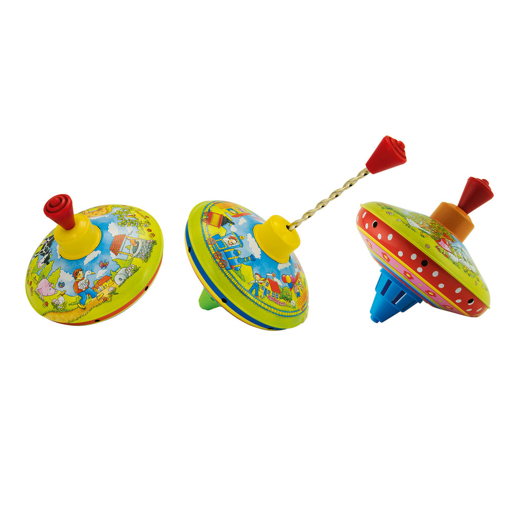 Gekleurde metalen bromtol met ratelend geluid. Geschikt voor kinderen vanaf 12 maanden.