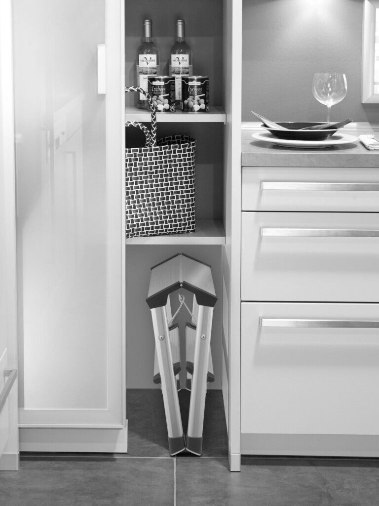 Draag de lichtgewicht L90 Trapladder onder uw arm en neem hem overal mee naar toe, of u nu planken in de kelder schoon moet maken, de ramen moeten wassen, of een lamp moet vervangen in de garage. De ladder heeft een vergrendelmechanisme dat per ongeluk in klappen voorkomt en hij treedt aan beide kanten op. De trapladder vouwt compact op, zodat u hem gewoon onder de tafel kunt schuiven of in een hoek kunt zetten na gebruik. De ladder heeft een maximaal laadvermogen van 150 kg en de maximale werkhoogte is 215 cm.