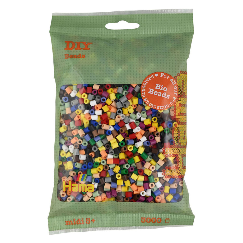 Zakje met daarin 3000 Hama Bio Midi Strijkkralen in een mooie kleurenmix. Bio Beads zijn gemaakt van een bijproduct van suikerriet en zijn CO2 - neutraal en volledig compatibel met originele Hama Beads. Ze hebben een diameter van 5 mm - dezelfde grootte en hetzelfde smeltpunt als Midi Hama-kralen. Geschikt vanaf 5 jaar.