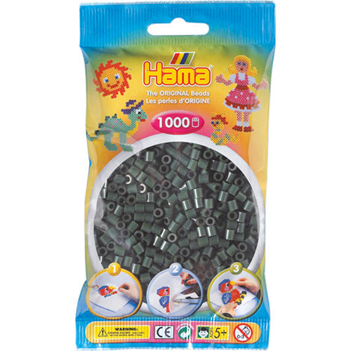 Strijkkralen kun je in bijna elk gewenst patroon leggen en door middel van strijkpapier en een strijkijzer samensmelten. 1000 stuks strijkkralen donkergroen. Zakje met 1000 donkergroene Hama strijkkralen. Geschikt voor kinderen vanaf 5 jaar.