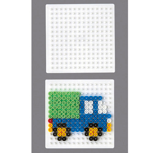 Strijkkralen kun je in bijna elk gewenst patroon leggen en door middel van strijkpapier en een strijkijzer samensmelten. Maar daarvoor heb je natuurlijk wel een grondplaat nodig. Kleine vierkante grondplaat. Klein vierkant Hama strijkkralenbordje. Exclusief strijkkralen.