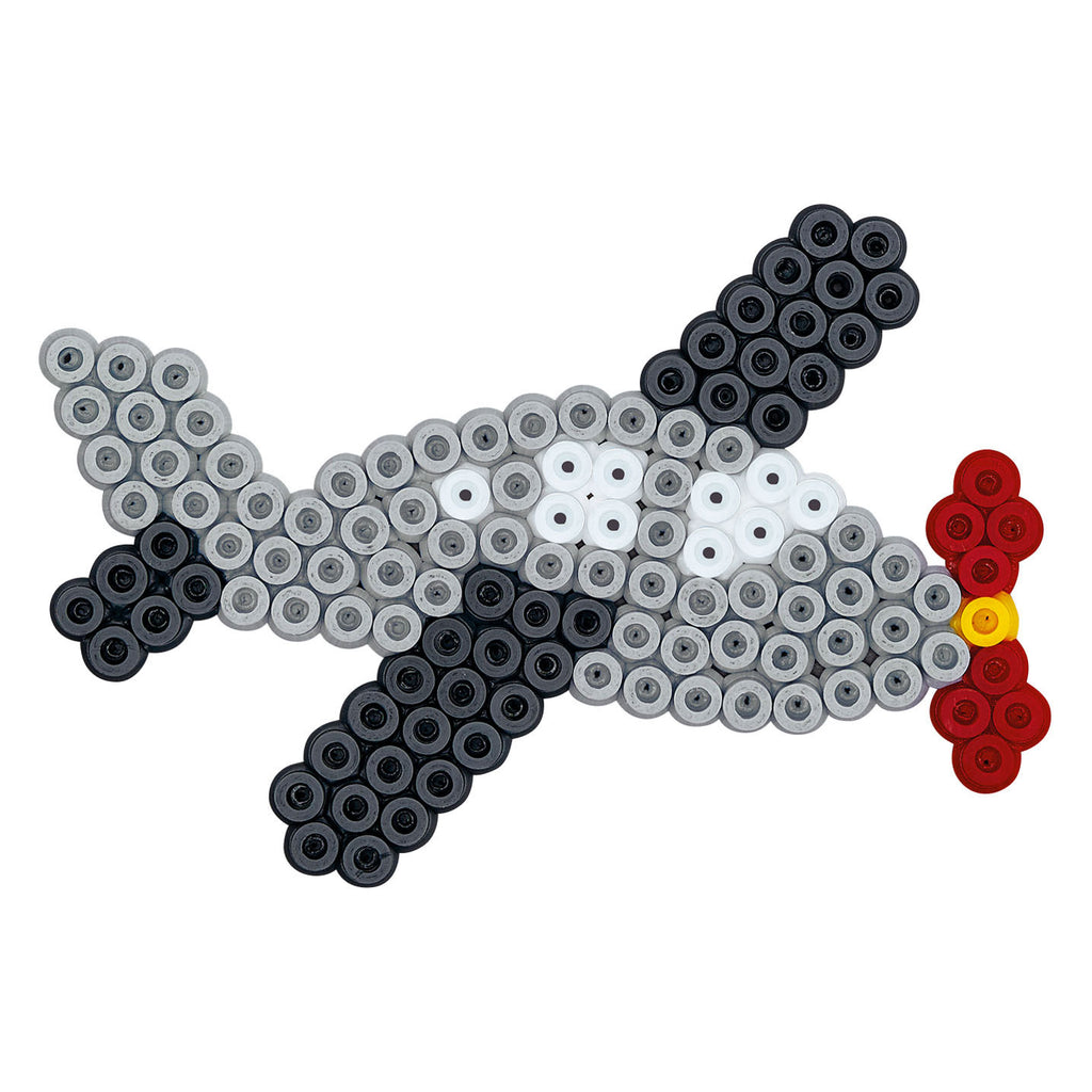 Hama strijkkralenset met 4000 kralen, 3 strijkkralenbordjes (auto, zeilschip en vliegtuig) en strijkpapier.
