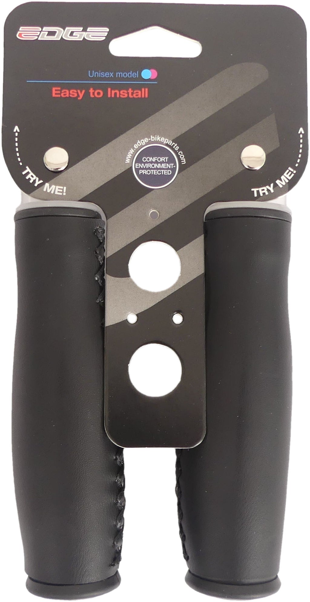 Deze handvatten van Edge, model City, zijn gemaakt van kunstleer en hebben een standaard lengte van 135 mm. Ze worden geleverd op een nette hangkaart. De zwarte handvatten zijn stijlvol en duurzaam.