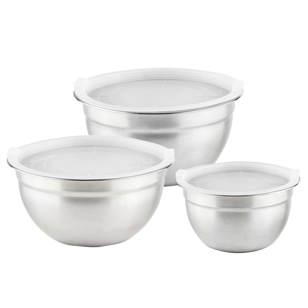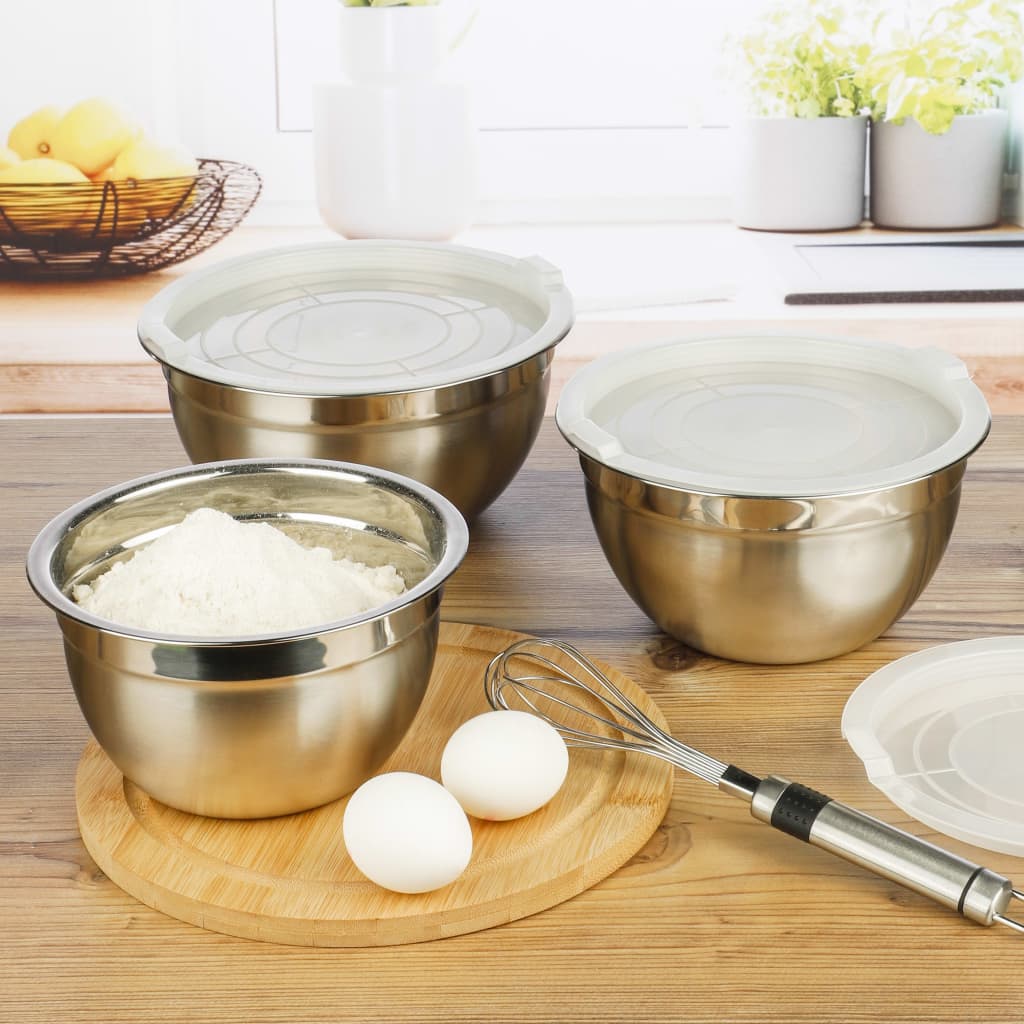 De kommenset bevat drie kommen van verschillende grootte om aan verschillende eisen te voldoen. Elke kom is uitgerust met een PP-deksel, waardoor de set ideaal is voor het bewaren van snacks, fruit, sauzen, chutney, enz., terwijl de inhoud vers blijft en uitdroging wordt voorkomen.