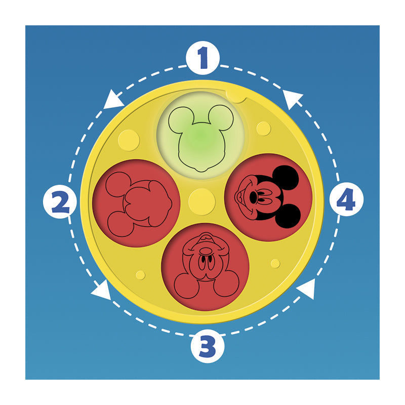 Teken met al jouw Disneyvriendjes! Dessineo Disney van Jumbo is speciaal ontworpen voor kinderen van 4 jaar en ouder. Met deze speciale Disney-versie van Dessineo leert u het soort op een eenvoudige en stapsgewijze manier Disney-figuren te tekenen. Zoals Mickey Mouse en zijn vrienden, Winnie de Poeh, Simba, Dory, Assepoester en nog veel meer! Hoe werkt het? Kies een van de transparante sjabloonschijven en leg deze in de draaischijf. Zet de projector aan, draai de schijf naar stap 1 en trek de lijnen over met een stift. Draai de schijf vervolgens door naar stap 2, 3 en 4. De sjablonen lopen op moeilijkheidsgraad. Alles kan netjes worden opgeborgen in de tekentafel. Inhoud: - 1 tekentafel met handvat - 30 tekensjablonen - 1 zwarte stift - 10 achtergrondbladen A4 - Handleiding
