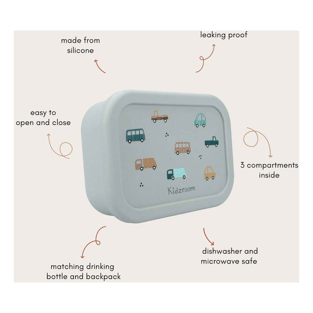 Wat een lieve lunchbox! Deze prachtige lunchbox van Kidzroom uit de Lovely Lunch-collectie is een echte must-have voor kinderen. De lunchbox heeft een stijlvolle groene kleur en is versierd met een autoprint. Dankzij het zachte siliconenmateriaal is de lunchbox eenvoudig te openen en te sluiten, perfect voor kleine kindjes. De binnenkant is slim ingedeeld in drie compartimenten, zodat je alle onderdelen van de lunch netjes en vers kunt houden. Door het silicone materiaal kan hij in de magnetron en in de vaatwasser. Praktisch én schattig! Voeg deze betoverende lunchbox van Kidzroom vandaag nog toe aan je assortiment.