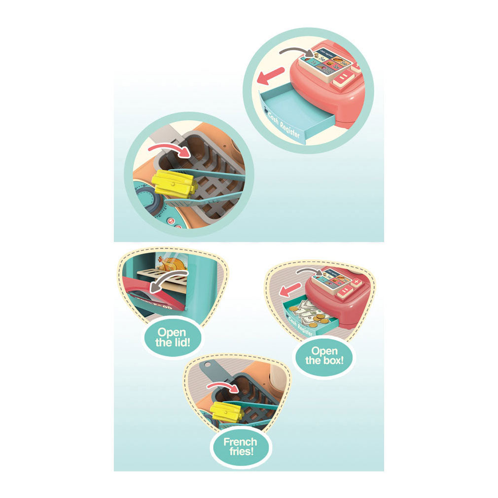 Grote fastfood kinderkeuken. Zeer compleet met veel accessoires en functionele onderdelen (oa kassalade en ovendeur). Geschikt voor kinderen vanaf 3 jaar oud.