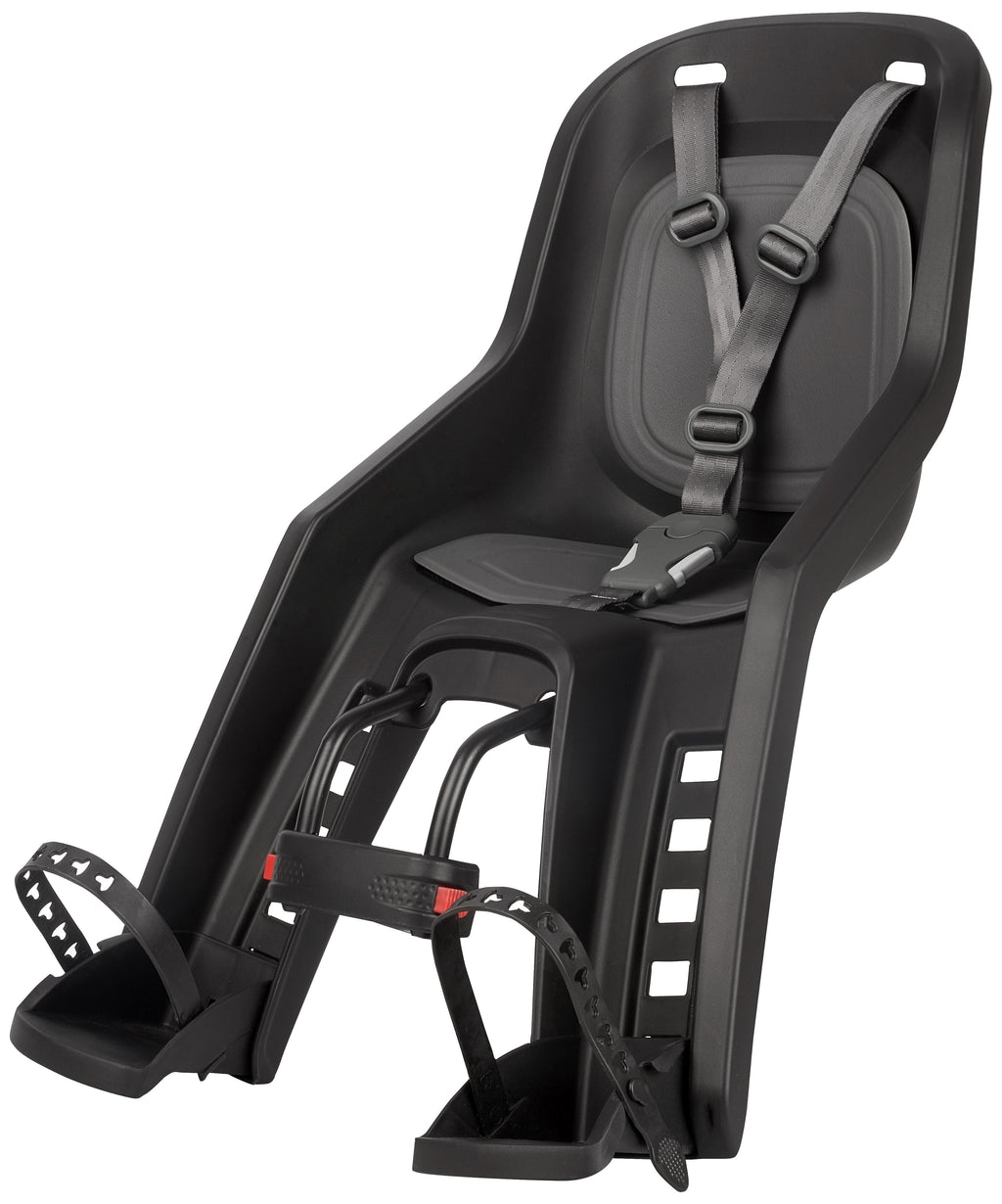 De framehouder zorgt ervoor dat er een paar druk op de knop is zodat het babyzitje in een handomdraai van de fiets kan worden verwijderd